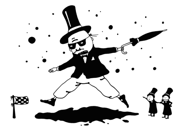 Чувствуя, что положение становится безвыходным, сэр Эндрю пошел на отчаянный шаг и извлек из внутреннего кармана сюртука пострадавшую при прыжке через лужу измятую и грязную черную маску. Надев ее вместо розовой, сэр Эндрю с надеждой взглянул на своих закадычных друзей.