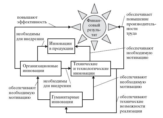 Взаимосвязь технических и технологических, организационных и гуманитарных инноваций приведена на рис. 1.3.
