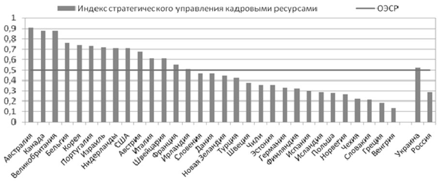 Рис. 1.2. Диаграмма индекса стратегического управления кадровыми ресурсами в странах ОЭСР, России и Украине Источник: OECD Government – at – a Glance[6].
