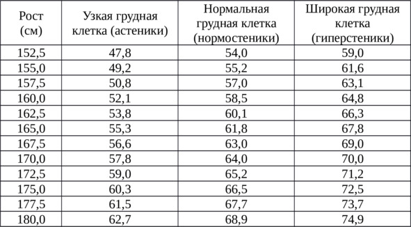 Как это определить? Для этого вначале по таблицам №1 и №2 узнайте величину того веса, который должен соответствовать вашей конституции и росту в возрасте от 21 года до 65 лет. При этом если вы гиперстеник (коренастый человек с «широкой костью»), ориентировочная норма веса будет одна, если нормостеник – другая, а если астеник (высокий человек с «тонкой костью») – третья.