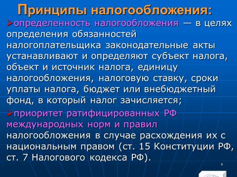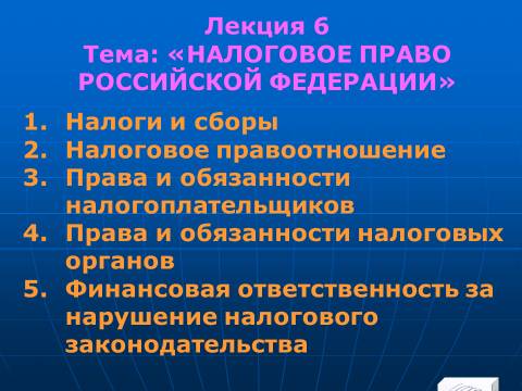 Тема №6 «НАЛОГОВОЕ ПРАВО РОССИЙСКОЙ ФЕДЕРАЦИИ»