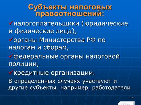 Налоговое право Российской Федерации. Слайды, тесты и ответы