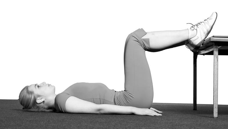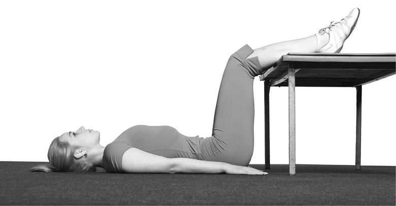Рецепт № 1 «Гусеница»И.П. (исходное положение): лежа на спине у кровати, ноги согнуты в коленях, стопы упираются в край кровати[3]. При желании таз можно продвинуть под кровать (см. фото 1 а, б).