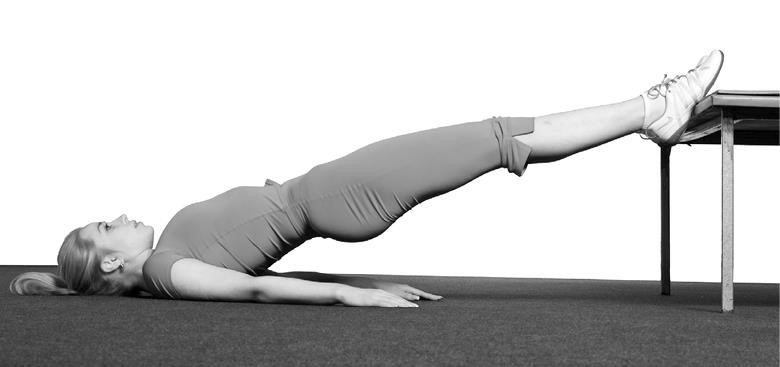 Рецепт № 2 «Полумостик»И.П.: то же. Но вместо отталкивания от кровати необходимо поднимать таз, стараясь напрягать мышцы ног и спины и расслаблять их при опускании в И.П. (см. фото 2 а, б). В отличие от обычного «полумостика», выполняемого на полу, при использовании кровати достигается максимальная амплитуда тела, а именно большие амплитуды отличают гимнастику без тренажеров от гимнастики на тренажерах.