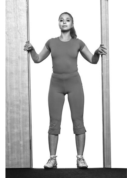 И.П.: стоя в проеме двери. Руками взяться за дверные косяки (см. фото 3 а, б).