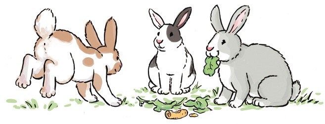 – Кролики очень хрупкие, – выпалила она. – Их нельзя поднимать, но если нужно, то обязательно придерживая задние лапы. Иначе кролик подумает, что его схватил ястреб, и запаникует. В дикой природе кролики питаются в основном травой, так что кормить их нужно сеном, ещё они любят салат и морковь. В качестве домашних животных кроликов лучше держать по несколько особей вместе. Им нужно много свободного пространства и места для того, чтобы спрятаться. Если хочешь погладить кролика, то лучше всего сесть на землю и подождать, пока он сам подойдёт к тебе.