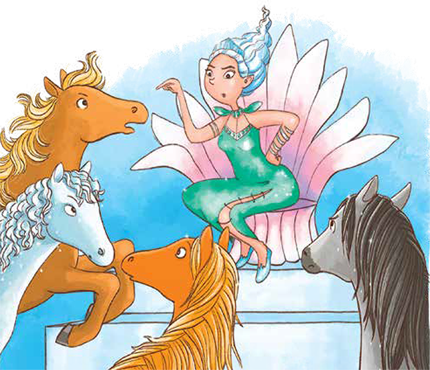 Четверо волшебных пони – Вихрь, Серебряная Капля, Снежный Кристалл и Золотая Искра – галопом мчались во дворец. Их позвала к себе Цирцея, новая правительница Лазурной страны. Как вы думаете, зачем?
