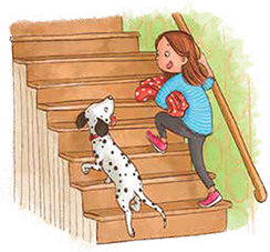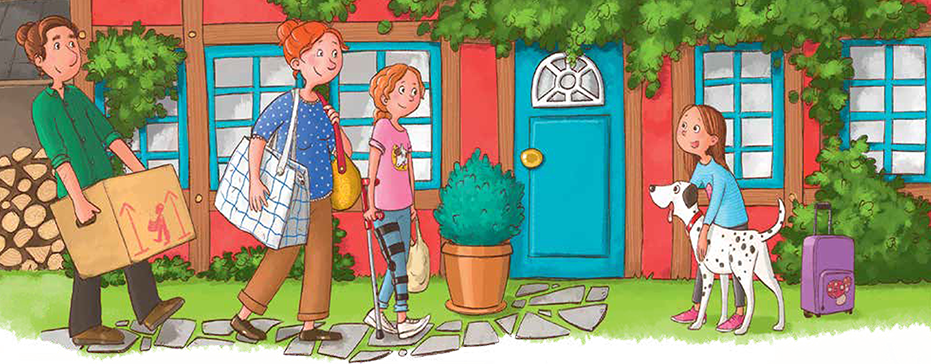 Лотти подпрыгивала на заднем сиденье, будто резиновый мячик. Как только машина остановилась, девочка распахнула дверцу и побежала к красному дому с белым забором. На лужайке перед домом громко лаяла собака. Узнав Лотти, пёс радостно бросился к ней, едва не сбив девочку с ног.