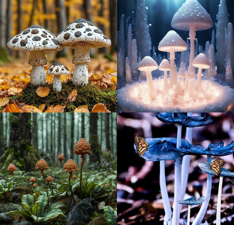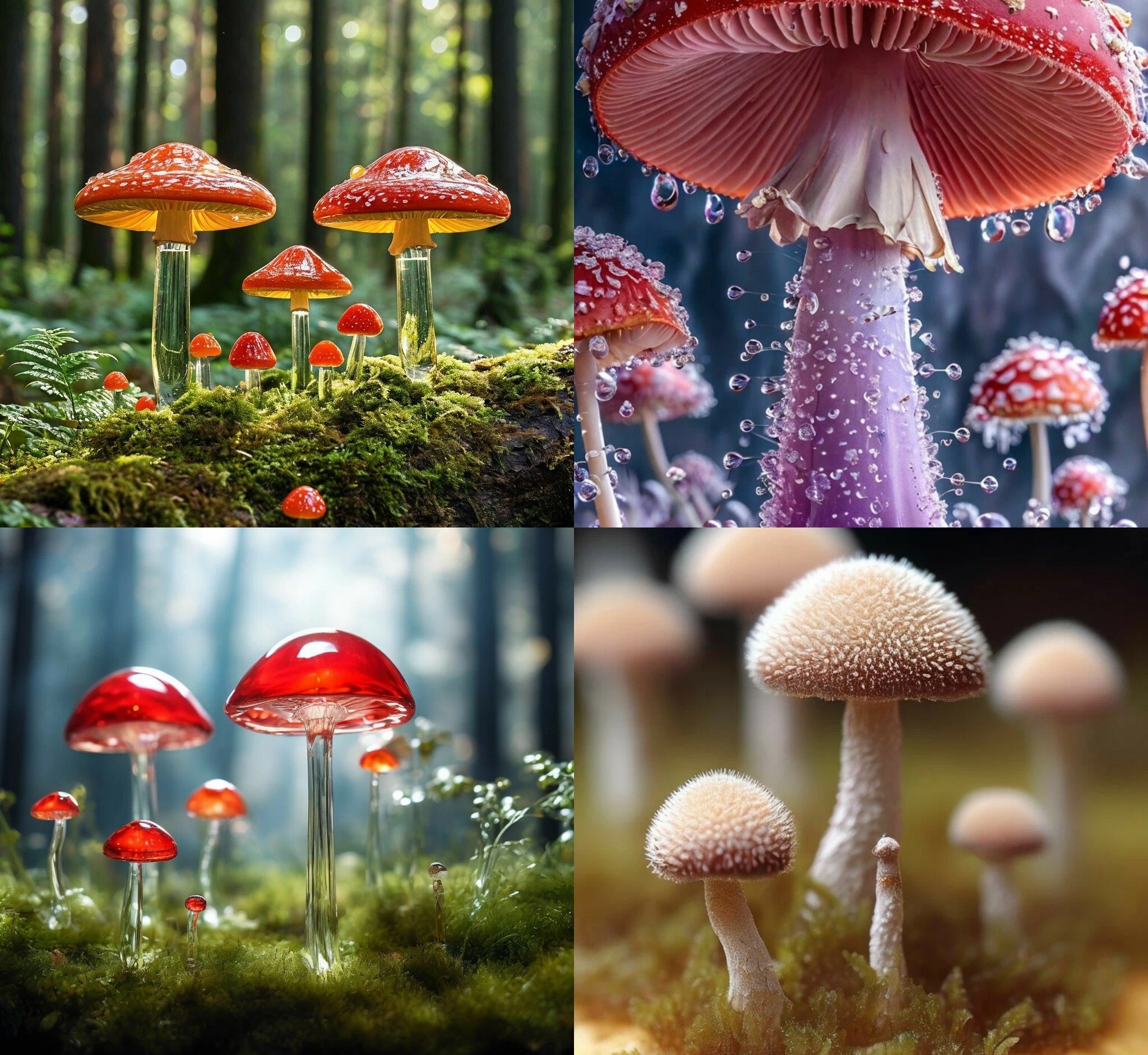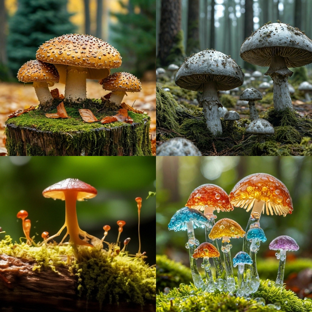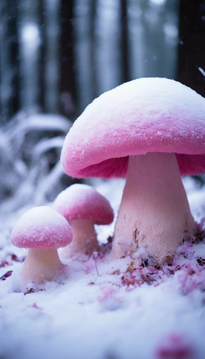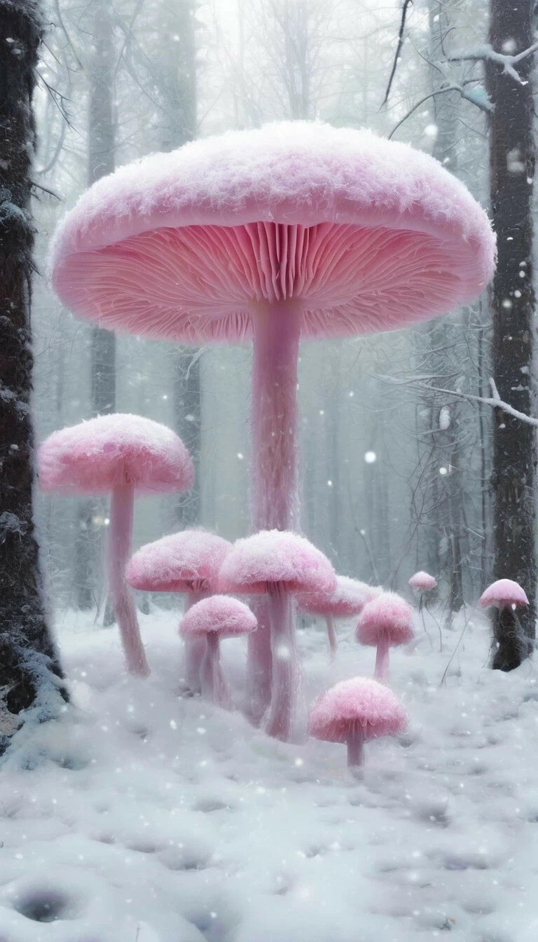 Грибы были довольно большие, их капли покрывали их поверхность, будто роса на растениях по утрам. Их цвета были разнообразными – от темно-серого до ярко-красного. Я удивился такому разнообразию в этот зимний период.