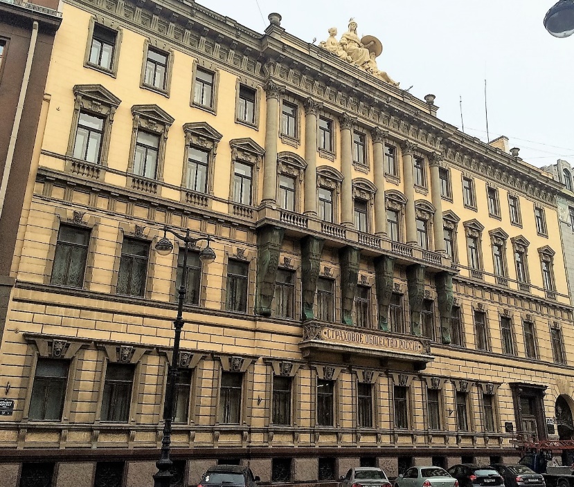 Остановимся напротив домов 35 и 37, которые с конца XIX века принадлежали страховому обществу «Россия».