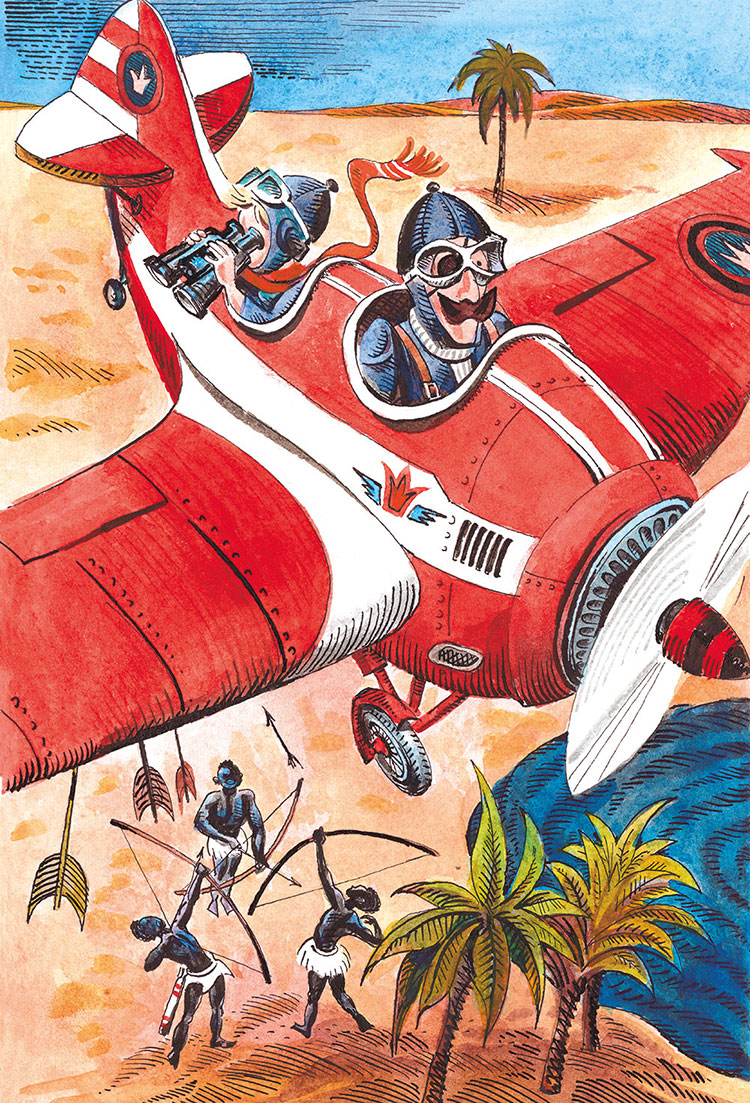 Как известно, спорить с упрямцем – дело бесполезное. Негры выгрузили по отдельности крылья, ящик с мотором, пропеллер, а потом под руководством пилота стали собирать аэроплан. Все старания переодетого солдата избавиться от дотошного пилота ни к чему не привели. Тогда он прибегнул к крайнему средству – угостил пилота усыпляющей сигарой. Тот затянулся несколько раз и уснул.
