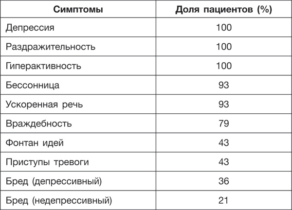 Таблица 1.3. Симптомы смешанного состояния у десяти пациентов[7]