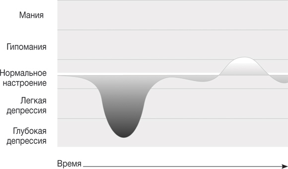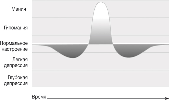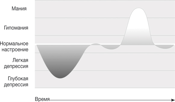 Как мы увидим ниже в этой главе, иногда люди с биполярным расстройством испытывают эпизоды депрессии или гипомании, но так и не доходят до глубокой мании. По этой причине, термин маниакально-депрессивный психоз был вычеркнут из словаря психиатров десятилетия назад. Классическое «маниакально-депрессивное» расстройство с эпизодами глубокой мании и депрессии может оказаться лишь одним из многих проявлений болезни.