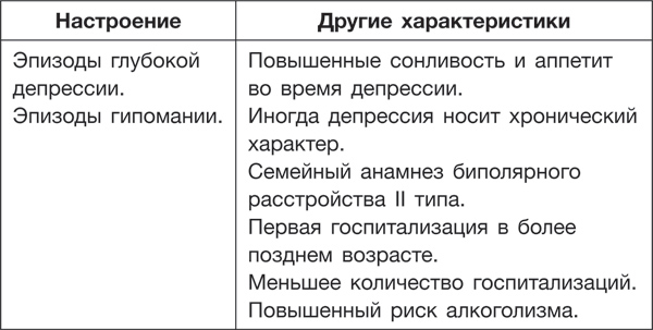 Таблица 2.3 Характеристики биполярного расстройства II типа
