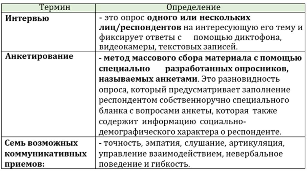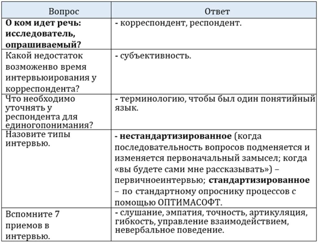 Интервью проводится по определенной схеме, описанной в программе ОПТИМАСОФТ.