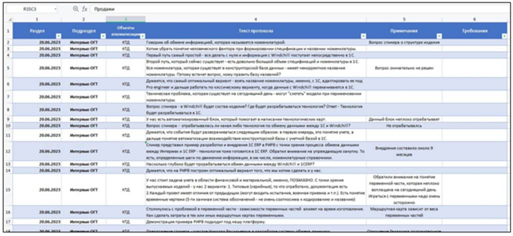 Существует определенная этапность обработки и получения требований. Формализация происходит в Excel и потом текст протокола и требований переносится в ОПТИМАСОФТ автоматизировано.