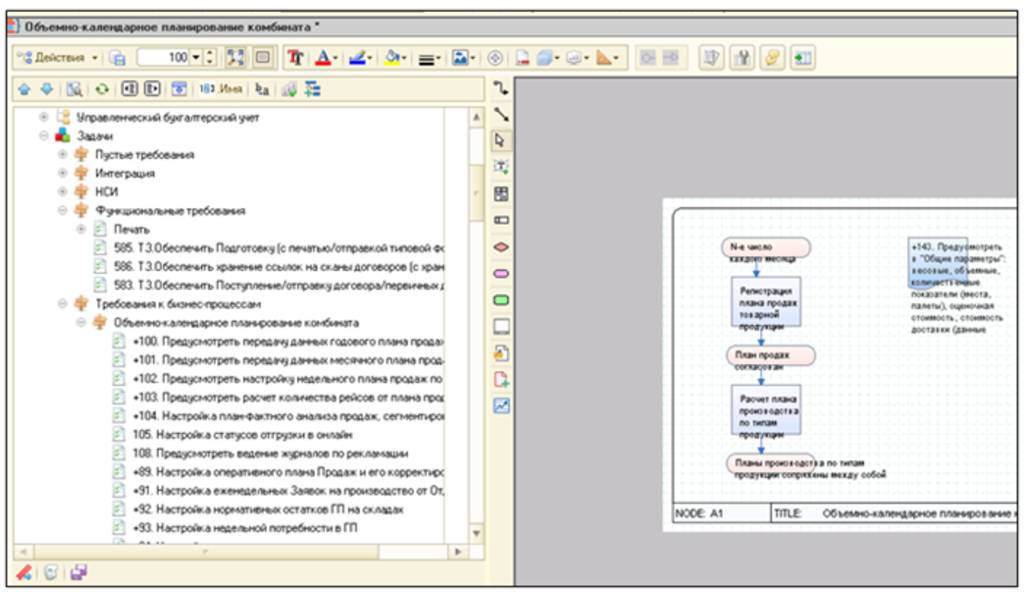 Требования загружаются автоматически в ОПТИМАСОФТ, после привязываются к процессам, и проводится анализ, все ли требования поглотила типовая процессная модель или нет.