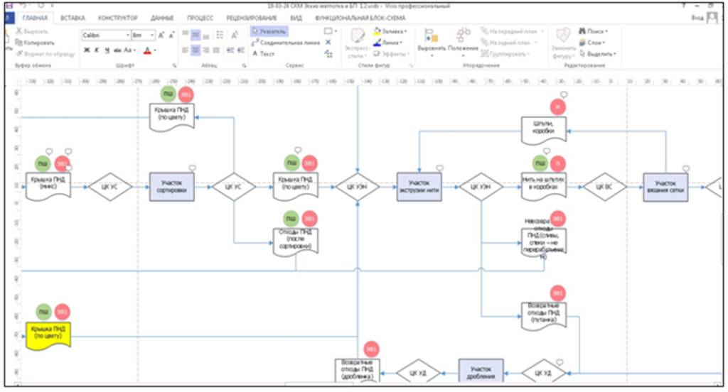 Схема 1. Структура материального потока предприятия для производства овощной сетки