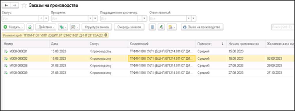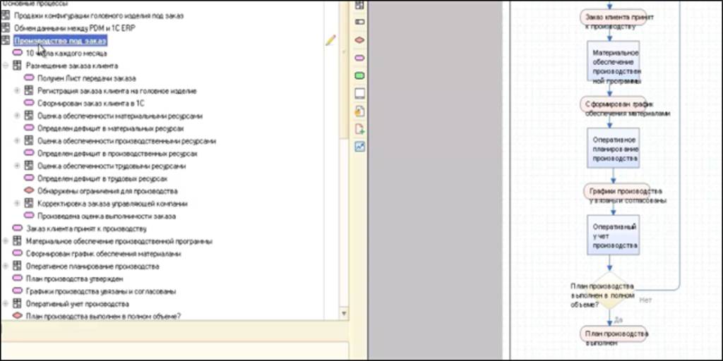 Вся документарная часть управления производством находится на стороне 1С Документооборот, а на стороне 1С:ERP – обеспечение.