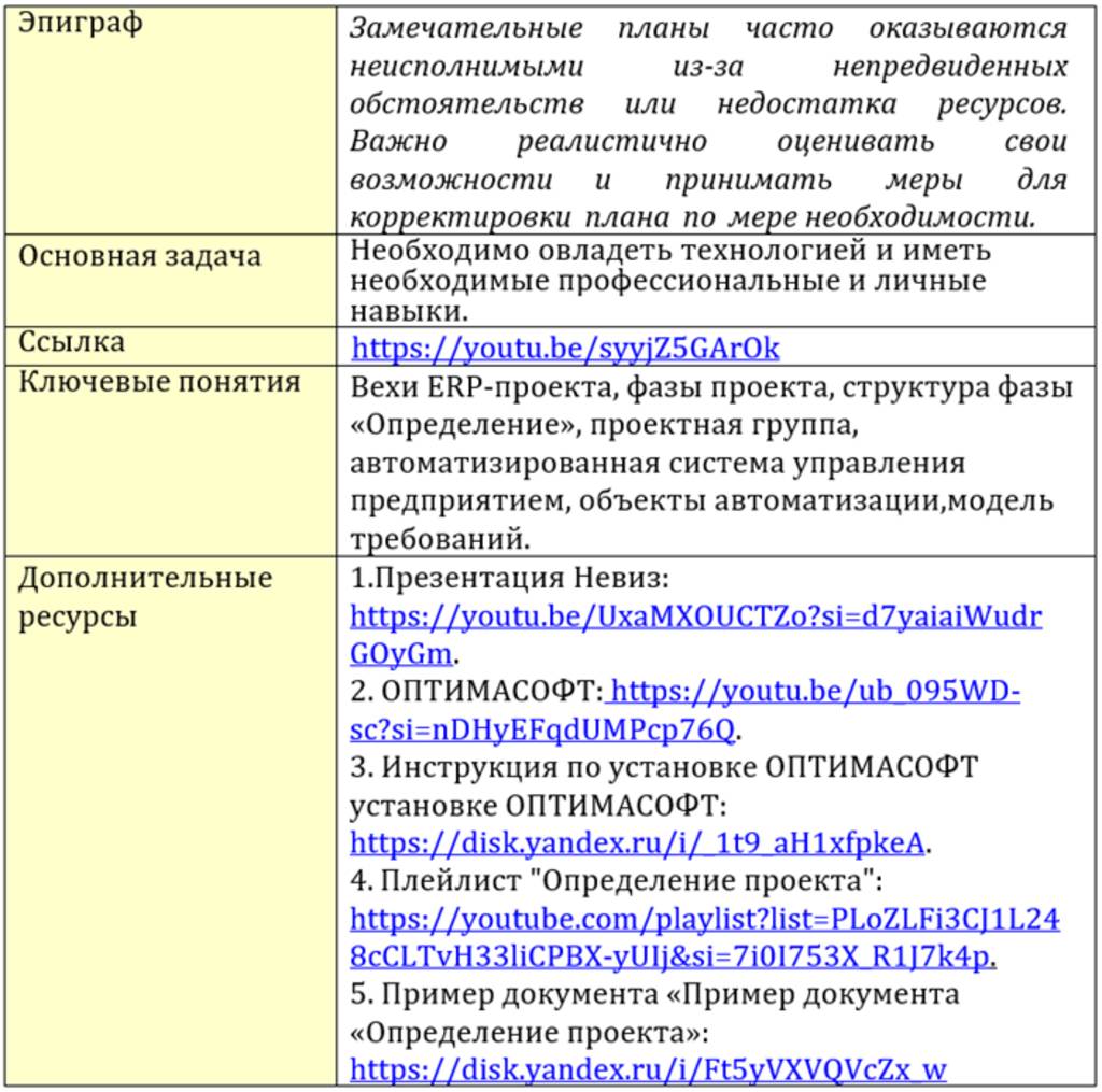 Схема 1. Структура документа Определение проекта