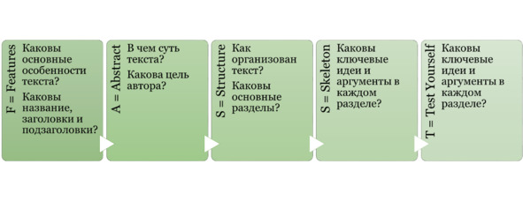 Один из эффективных способов ознакомления с текстом – использование метода FASST (рисунок 3), который расшифровывается следующим образом: