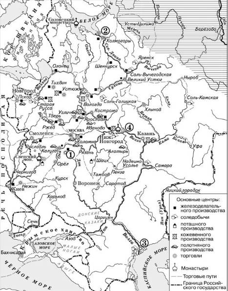 3. Цифрой «2» на схеме обозначен город, являющийся главным портовым городом России в XVII в.