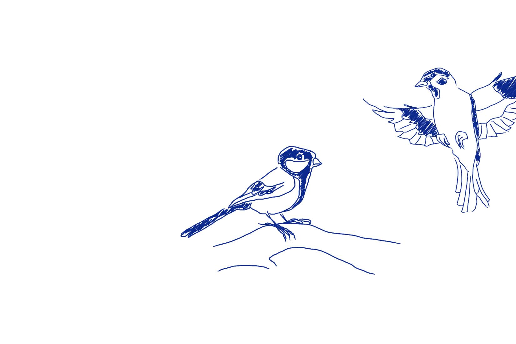 – Ты мне на лапу наступил! – возмущается маленькая лазоревка.