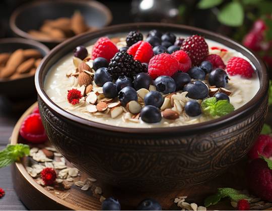 Варим геркулес – 25 мин, добавляем соль, сахарозаменитель по вкусу, в готовый геркулес добавляем протеин, смешиваем, перед подачей украшаем ягодами.