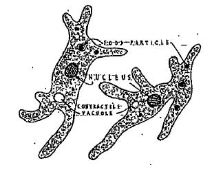 Амеба в движении: две фазы. Существо перемещается, испуская несимметричные проекции своего тела.