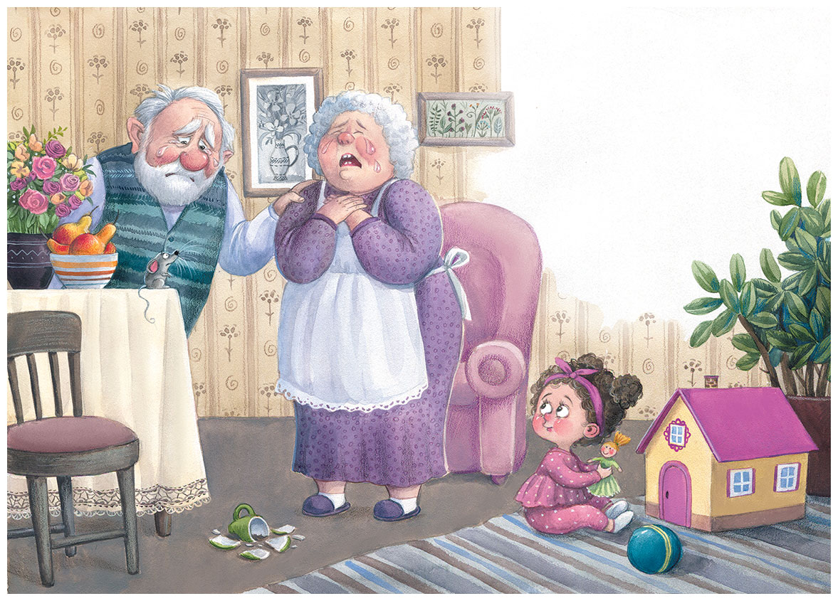 Дед плачет, баба плачет, а внучка взяла суперклей и склеила чашку. Потом позвала мышку и строго-настрого наказала ей: по столу не бегать и хвостом не размахивать. «А то вон сколько слёз от тебя!»