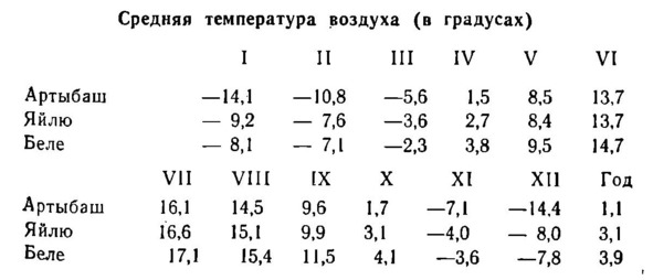 Ледники на горных хребтах отсутствуют, но вершины гольцов с середины сентября и до середины июня покрыты снегом.