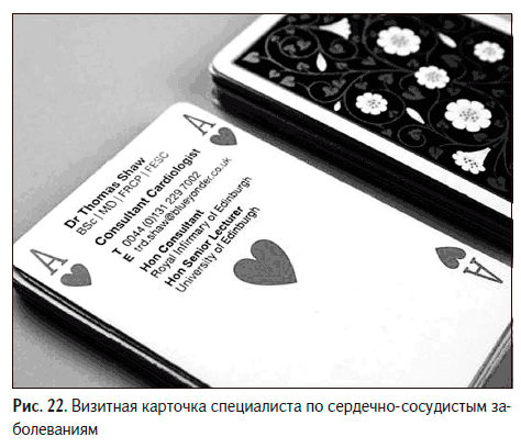 Как вы думаете, получил ли он работу? Кстати, червовый туз – это совсем неплохой вариант визитки для врача-кардиолога (рис. 22).