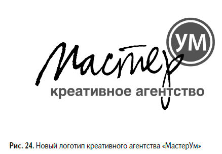 В этой главе речь пойдет о нейминге[10]. Согласитесь, что рассказывать о нем, когда твоя собственная компания называется «Дэнекс», неправильно и как-то странно. Но сегодня у нас уже новое название – «МастерУм». Креативное агентство «МастерУм» (рис. 24). Наше представительство в Интернете – mastermind.ru.