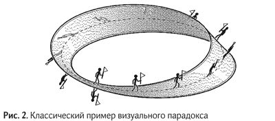 Парадокс бывает вербальным, как мы только что видели в остроумном наблюдении Веры Павловой. А может быть и визуальным. Классический пример – это лента Мёбиуса (рис. 2).
