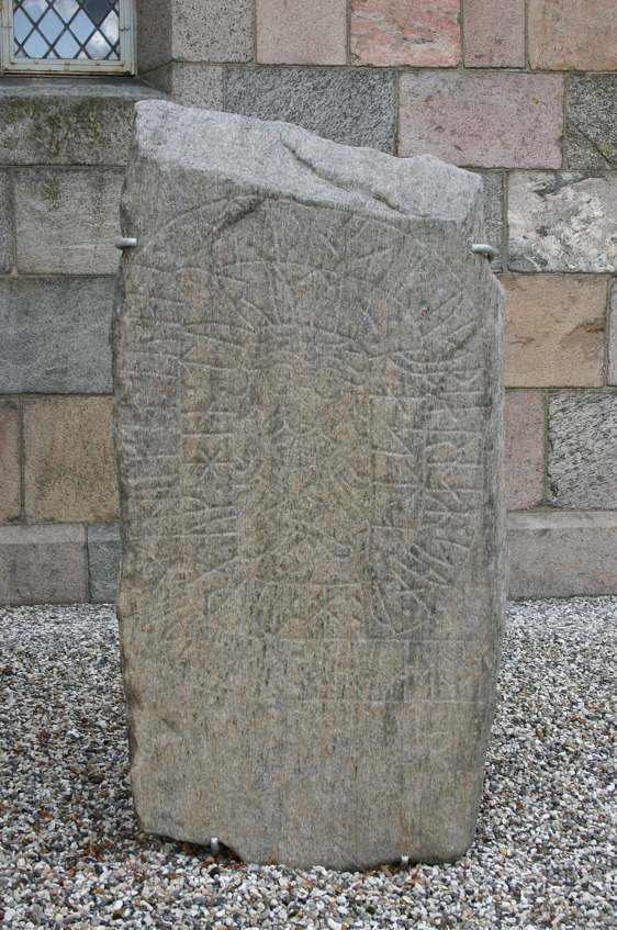 Надпись на камне из Скерна. Помимо погребальной эпитафии, на нём есть предупреждение, о том, что «Колдовство падет на того, кто попытается разрушить этот камень».