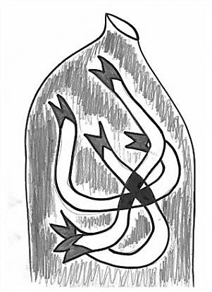 Три ленточки мечтали выбраться на свободу. Несвобода не давала такой возможности. Они для укрепления сил решили объединиться и рвануть из горлышка стеклянного заточителя.