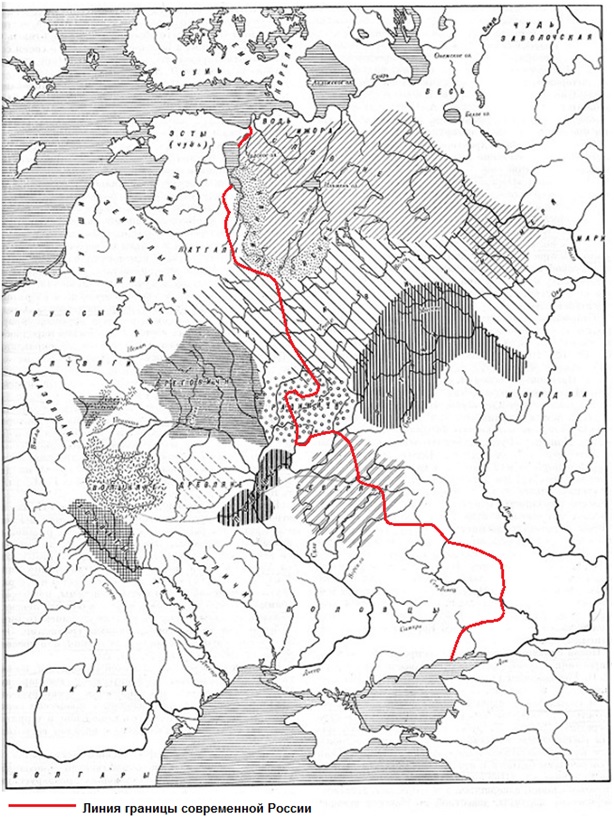 Для начала определимся, какие из известных летописи славянских племён следует считать предками собственно русского народа, то есть великорусов (а не украинцев или белорусов). Наверное, те, чьи племенные территории полностью находились в границах современной России. Таких племён насчитываем всего два: вятичи и ильменские (новгородские) словене. Земли ещё двух племён – кривичей и радимичей – сегодня разделены примерно поровну между Россией и Белоруссией, а бывшая земля северян (сиверцев) – между Россией и Украиной.
