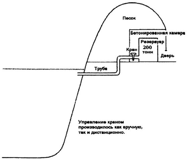 Но как мы сможем переправиться через канал? Существовало и четвертое тайное препятствие. В глубине песчаного вала противник зарыл резервуары с воспламеняющейся жидкостью, выпускные трубопроводы которых управлялись из ближайших опорных пунктов. За несколько минут жидкость могла низвергнуться в канал, превращая его поверхность в адское пекло.