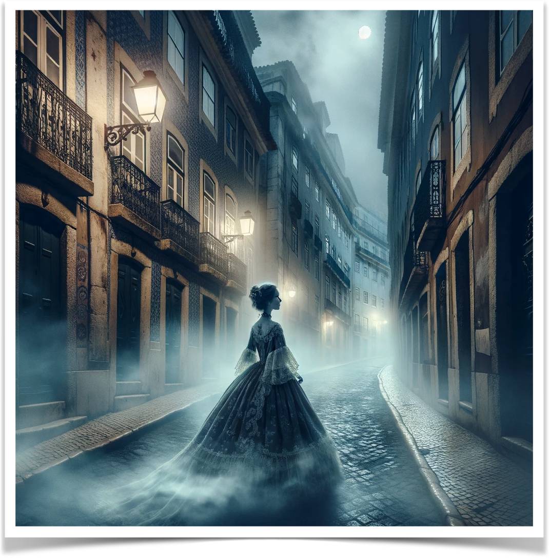 Anos passaram. A dama ficou velha e morreu. Mas seu espírito não encontrou paz. Ela ainda anda pelas ruas de Lisboa. Muitas