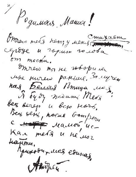 В правом углу л. 1 поздняя помета Марии Александровны: «Первое письмо ко мне».