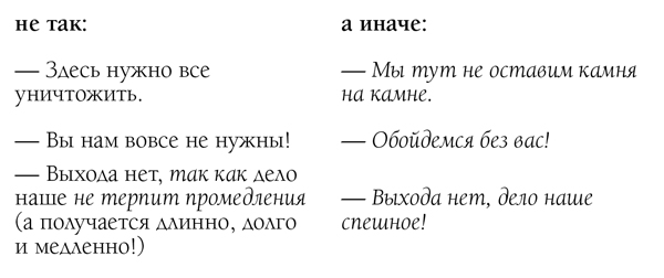 Особенно некстати лишние местоимения, союзы, связки в отрывистом взволнованном диалоге.