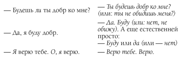 «И что же ты ему на это сказала?» А в подлиннике очень коротко, даже отрывисто: «And you said?» – «Что же ты сказала?» (или даже: Ну, а ты?) И дальше: «And you will say…»