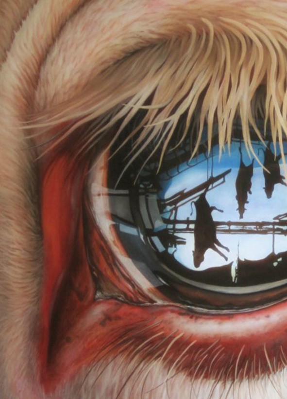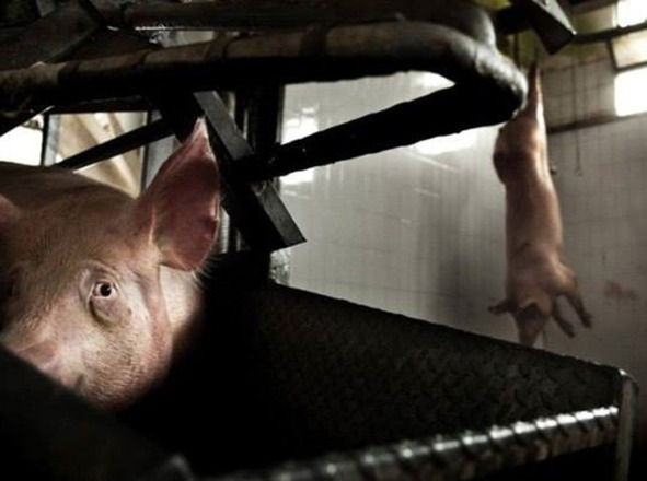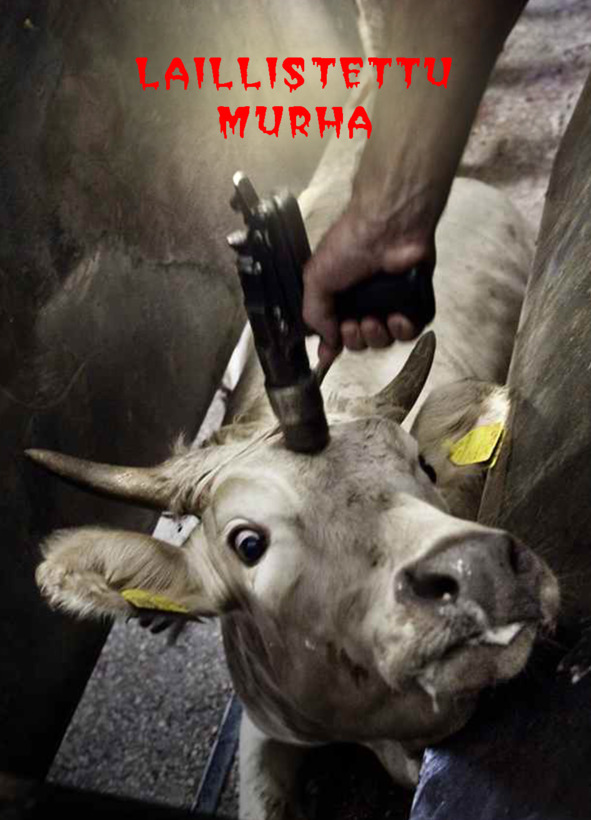 Tällä hetkellä kaikkialla maailmassa eläimiä kuljetetaan kuorma-autoissa teurastamoihin, tiloihin, joita me olemme ahkerasti rakentaneet suorittaaksemme systemaattisia murhia! Eläimet ovat peloissaan, he ovat nälkäisiä, he eivät ole pitkään aikaan saaneet vettä, heillä ei ole mitään eikä ketään muita kuin toisensa. Heidän silmissään on suunnattomasti pelkoa, koska he aavistavat, mitä heille seuraavaksi tapahtuu. Kun kuorma-autot saapuvat perille, heidät työnnetään ulos sieltä ja he menevät kohti omaa kuolemaansa! Miljardit eläimet jonottavat teurastustaan ja he ovat kauhean peloissaan. Ilmassa haisee veri, he tuntevat sen ja he eivät halua kuolla! Elävät, tuntevat olennot astuvat teurastamoon. Ihminen tappaa heidät ja leikkaa satoihin palasiin, jotta me saisimme syödä heidän ruumiinsa.