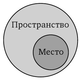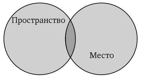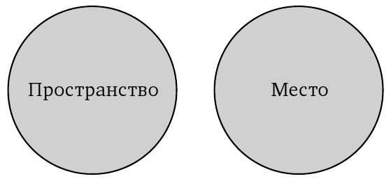 Наконец, концептуализация, которая чаще всего используется в повседневном обиходе и неспециалистами: пространство и место представляют собой одно и то же, поэтому различение их избыточно. В повседневных коммуникациях контекстуальная взаимозаменяемость обоих понятий действительно является привычной, но в этой книге различия между ними проводятся совершенно целенаправленно.