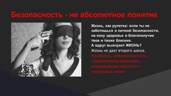 Безопасное мышление – это обеспечение безопасности во всех аспектах жизни и жизнедеятельности при наличии опасности.