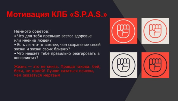 Именно с этим связан долгий путь КЛБ «С.П.А.С.» в массы – с 2005 года до наших дней попытки достучаться до российских государственных органов вплоть до Государственной думы. Круглый стол в Общественной палате РФ в 2017 году, несколько лет работы с депутатами и с общественными организациями под патронажем законодательных учреждений не дали должных результатов, стало понятно, что до КЛБ государство не доросло. Однако спустя 15 лет люди готовы воспринимать информацию, и я перестал стучать в закрытые двери и в индивидуальном порядке стал обучать людей сути и смыслу, целям и задачам личной безопасности.