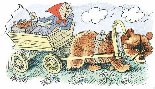 – У моей бабушки в деревне ручной медведь живёт. Она его в телегу запрягает. Он её возит. И квас в сельпо доставляет. А сейчас зима. Он под бабушкиной кроватью спит. Весной его разбудят. Со всего района будильники соберут. Поедете к нам в деревню, сами увидите.