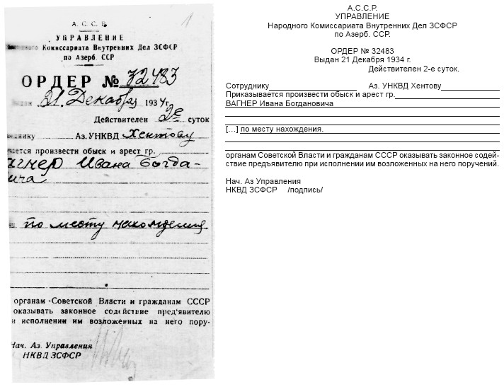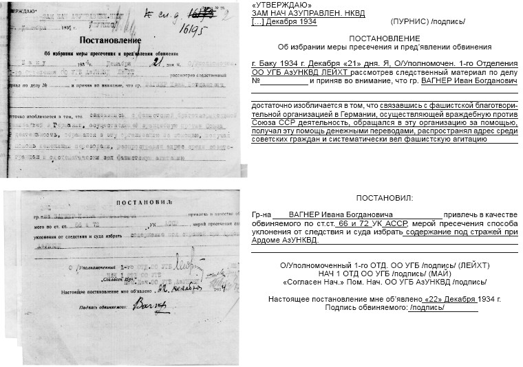 Иван Вагнер. Фотография из следственного дела. Баку, 1935–1936 год.