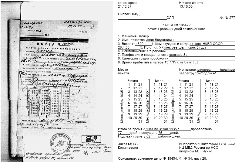 1 августа 1935 года вышел приказ НКВД «О зачете рабочих дней заключенным лагерей и мест заключения НКВД», в котором сообщалось, что «зачет рабочих дней является одной из основных форм досрочного освобождения заключенных из лагерей, тюрем и колоний НКВД и высшей формой поощрения для заключенных». В лагерях за ударную работу и образцовое поведение предусматривался зачет: за 2 дня работы – 3 дня срока. В лагерях, особо отдаленных, ведущих строительство государственного значения (Бамлаг, Севвостлаг, Вайгач, отдельные подразделения Дальлага и Ухты), предусматривался сверхударный зачет: за 1 день работы – 2 дня срока.