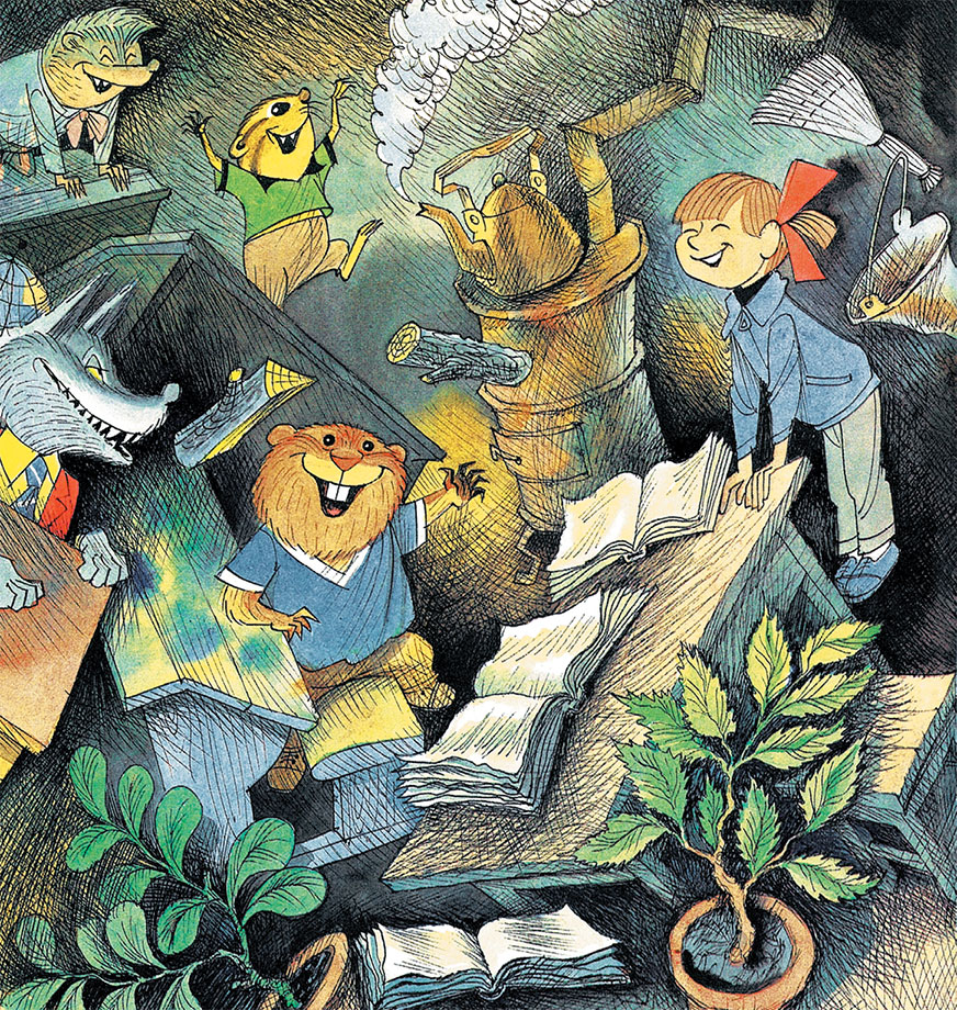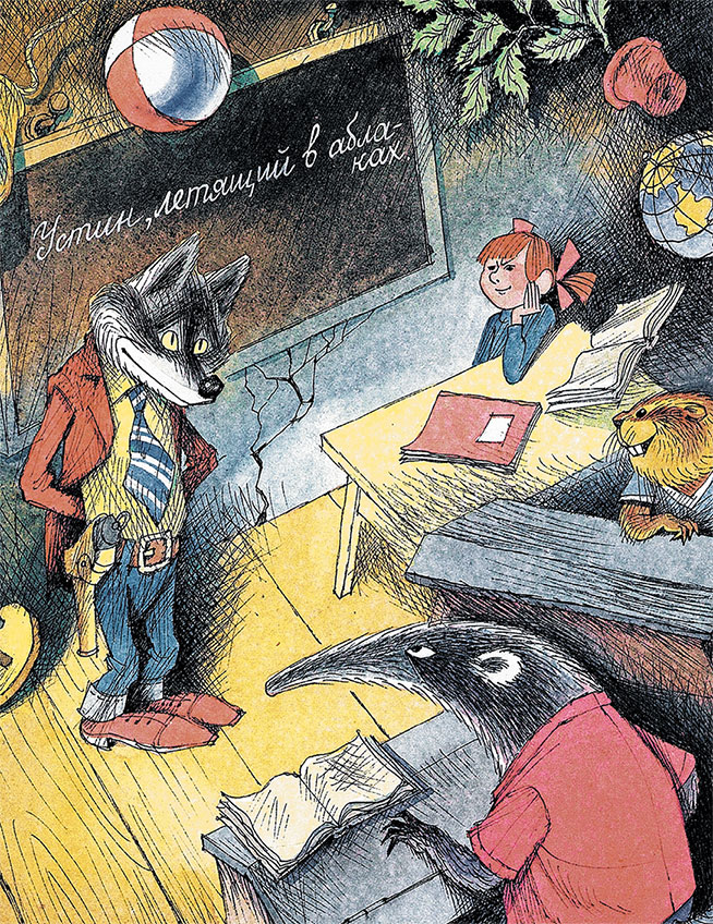 – Уже лучше. Сняли! А теперь продолжаем занятия. Я прошу подойти к доске… вас, – попросила она бурундукового подростка с задней парты, соседа муравьеда Биби-Моки.
